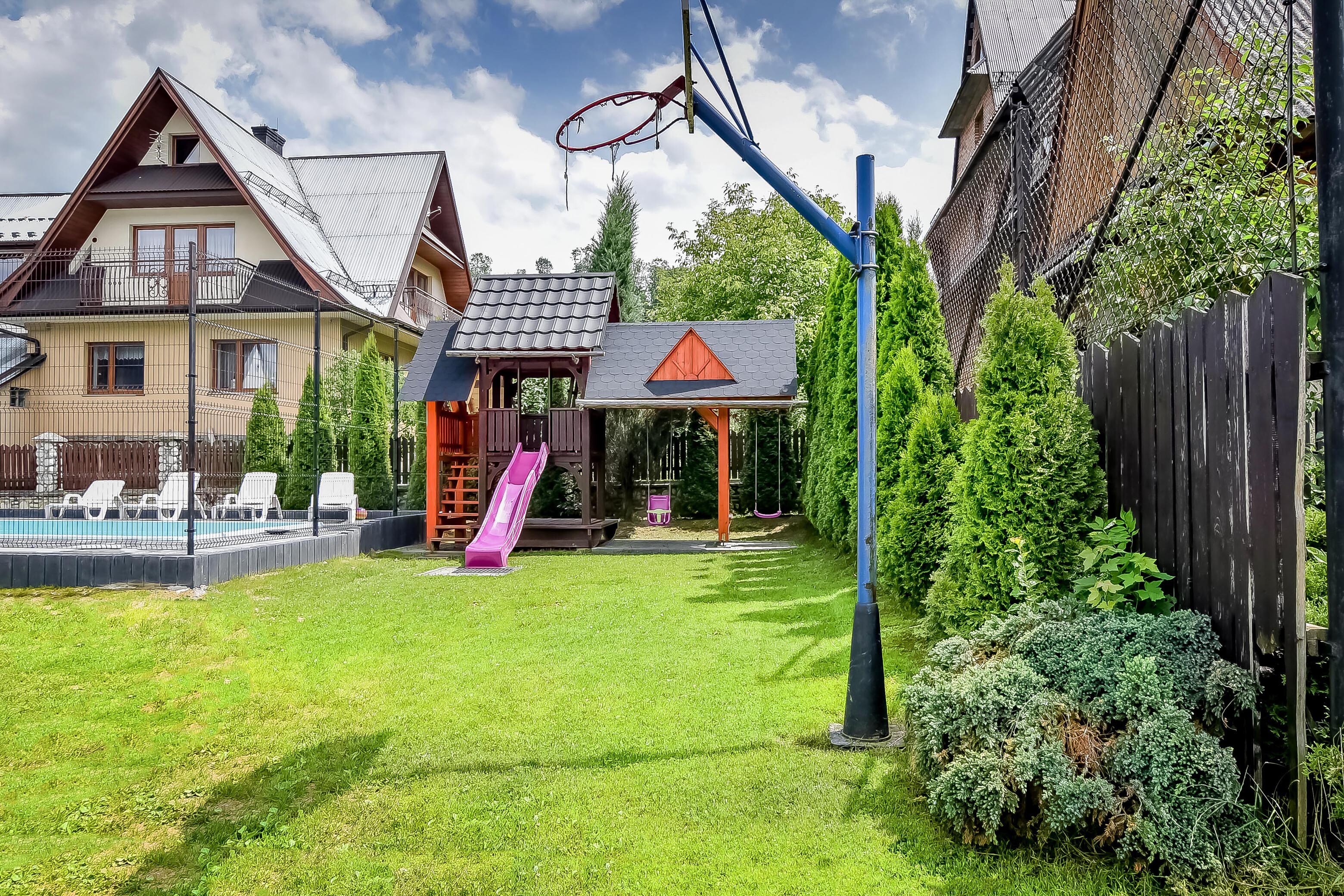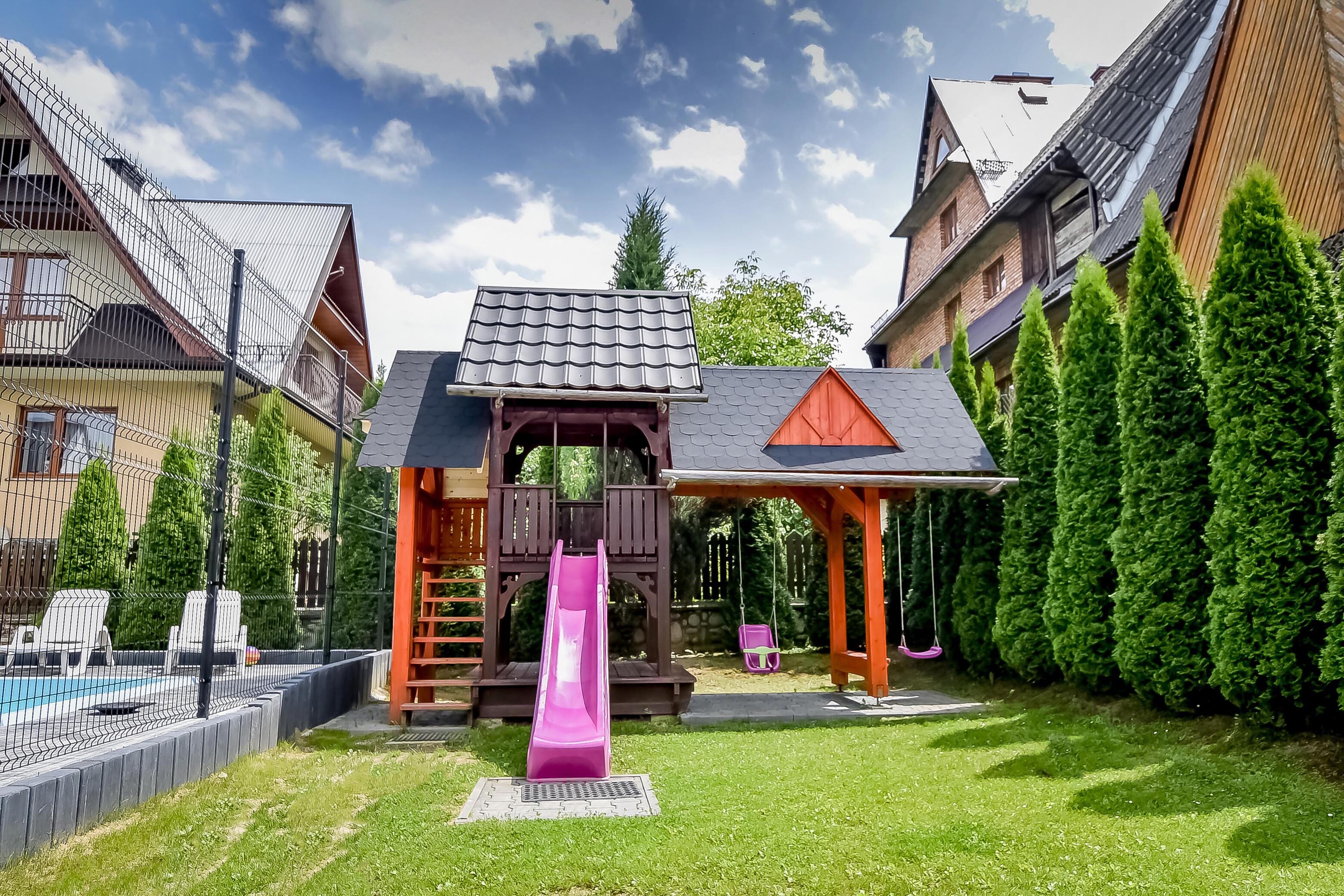 - domek do zabawy ze zjeżdżalnią,