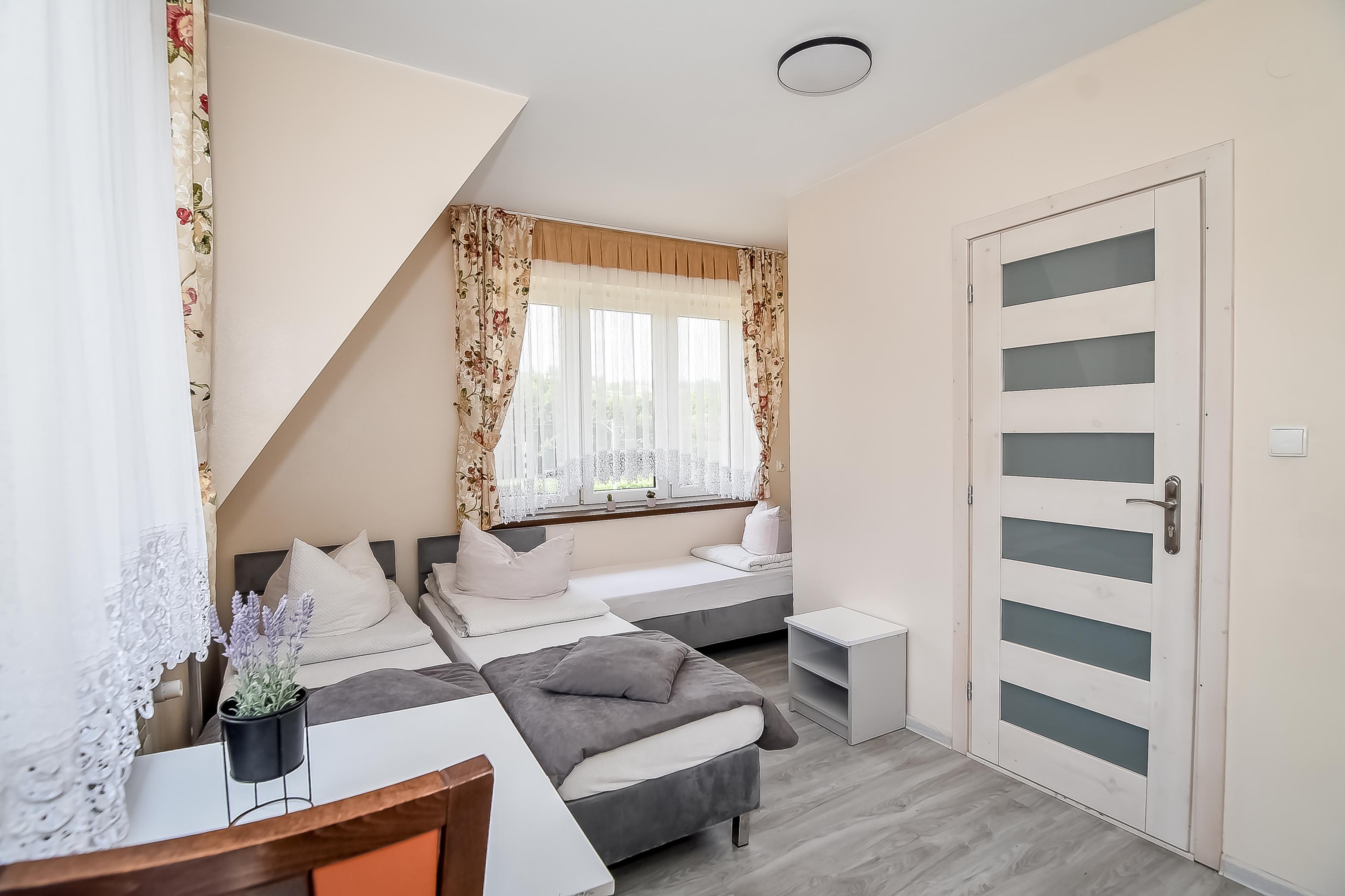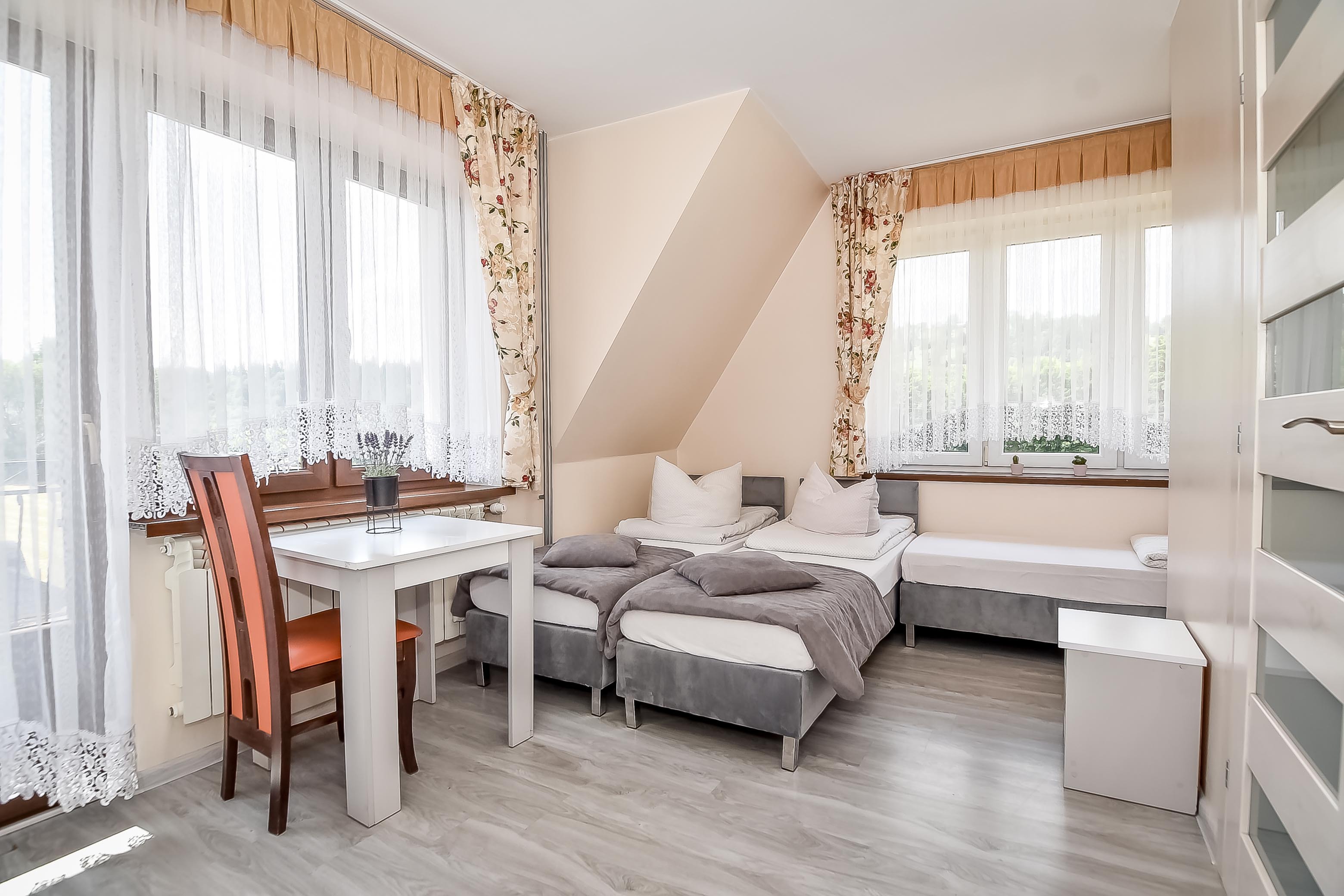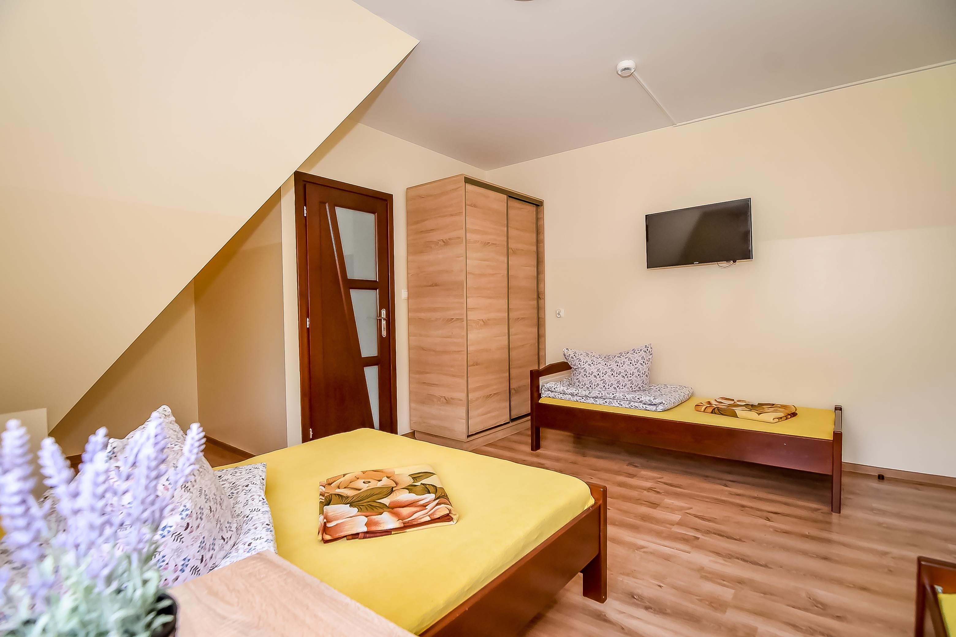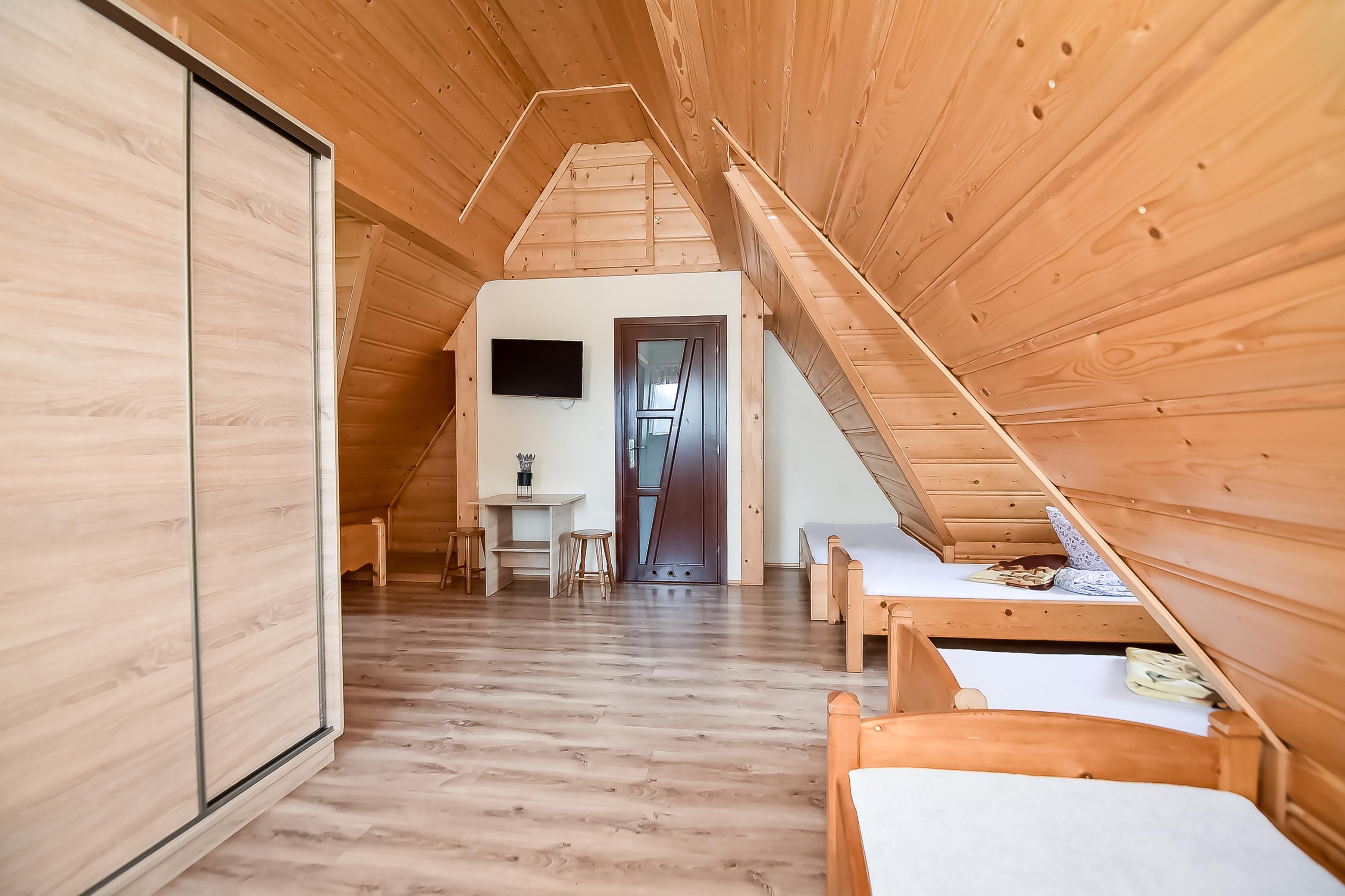 - pokoje 2, 3 i 4 osobowe z pełnym węzłem sanitarnym i TV,